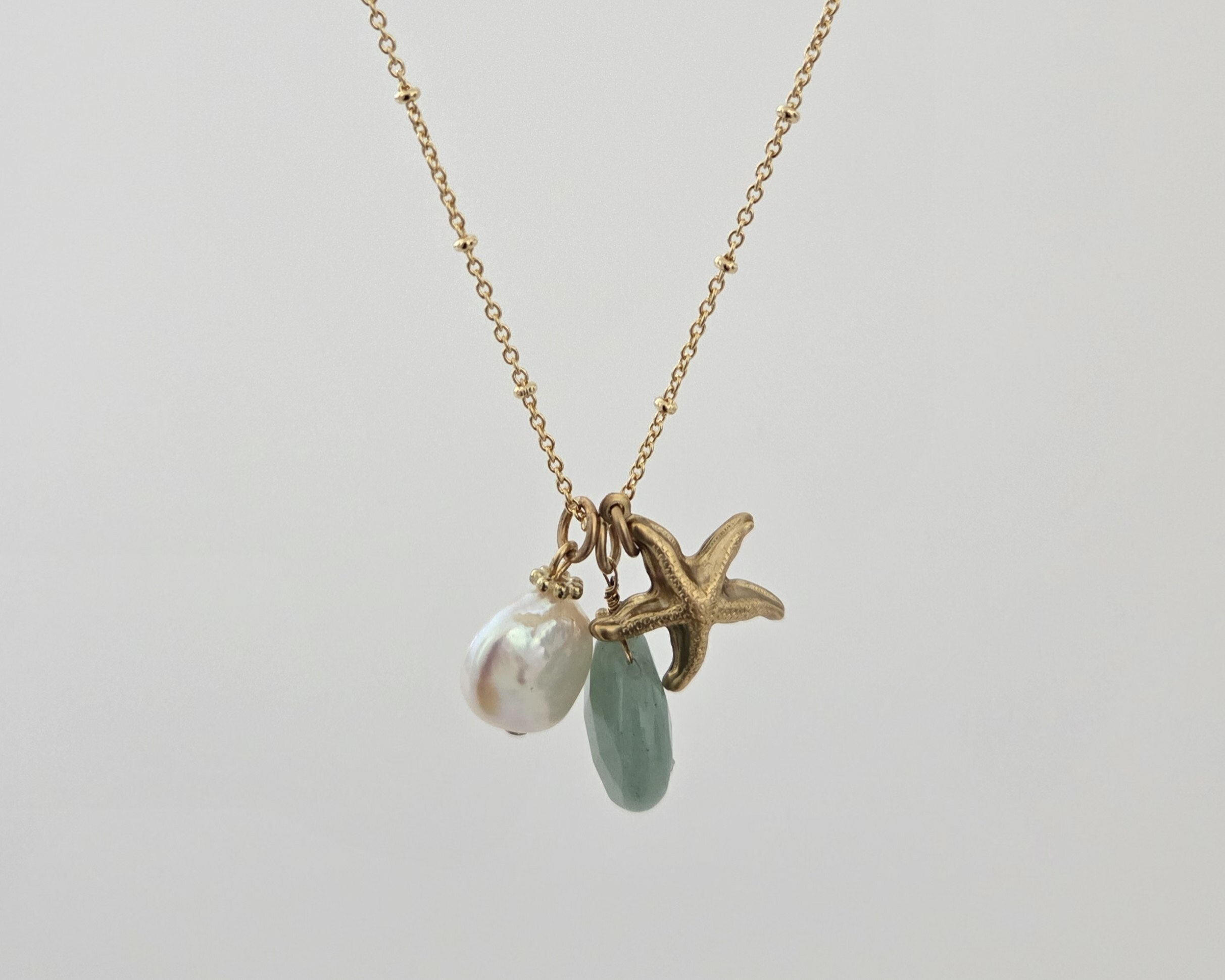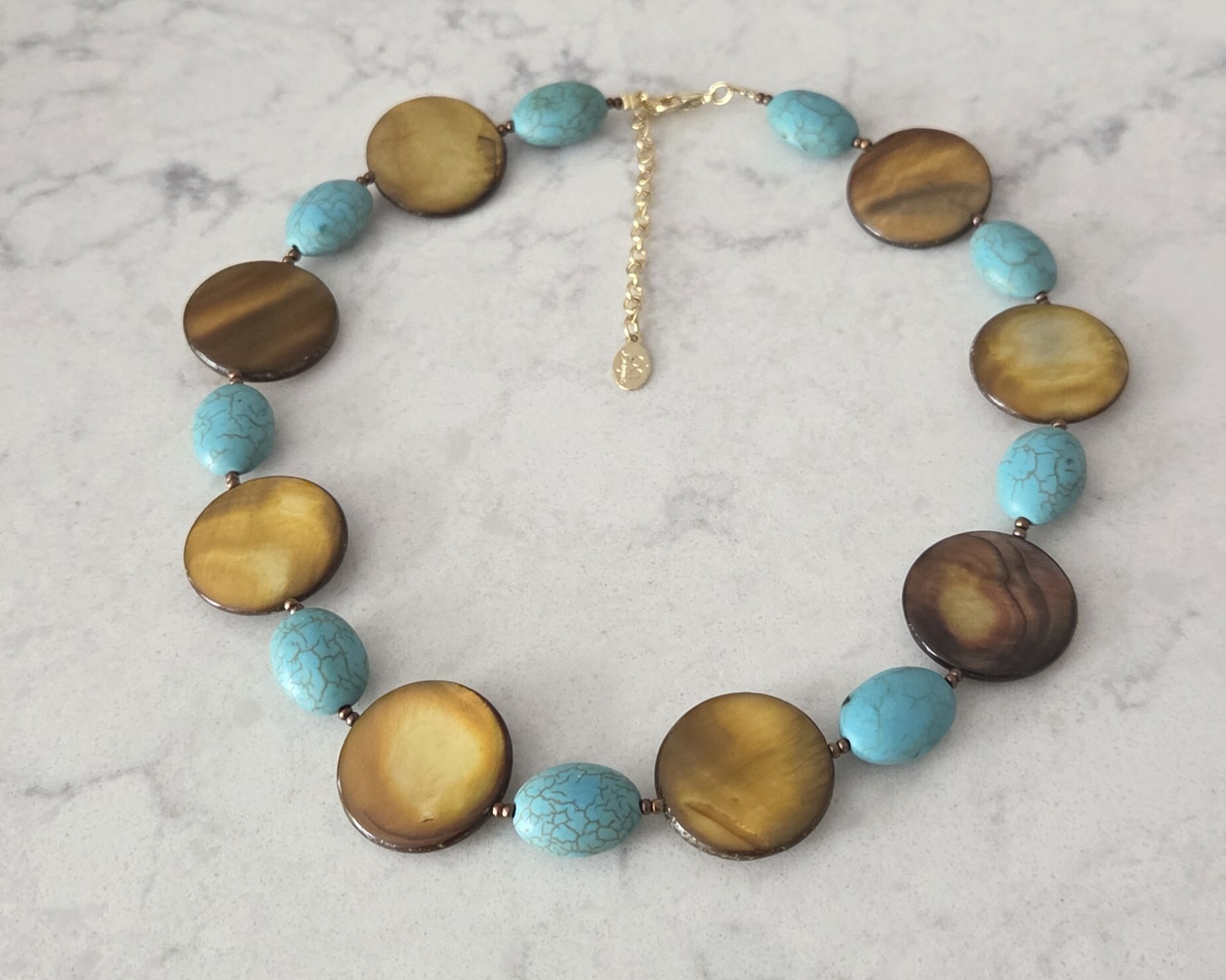 Triple Mother of Pearl and Aquamarine Quartz Necklace